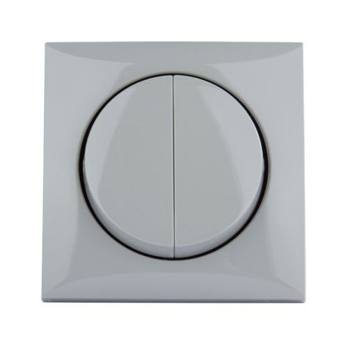 Deze grijze dubbele lichtschakelaar wordt inclusief afdekraam geleverd.