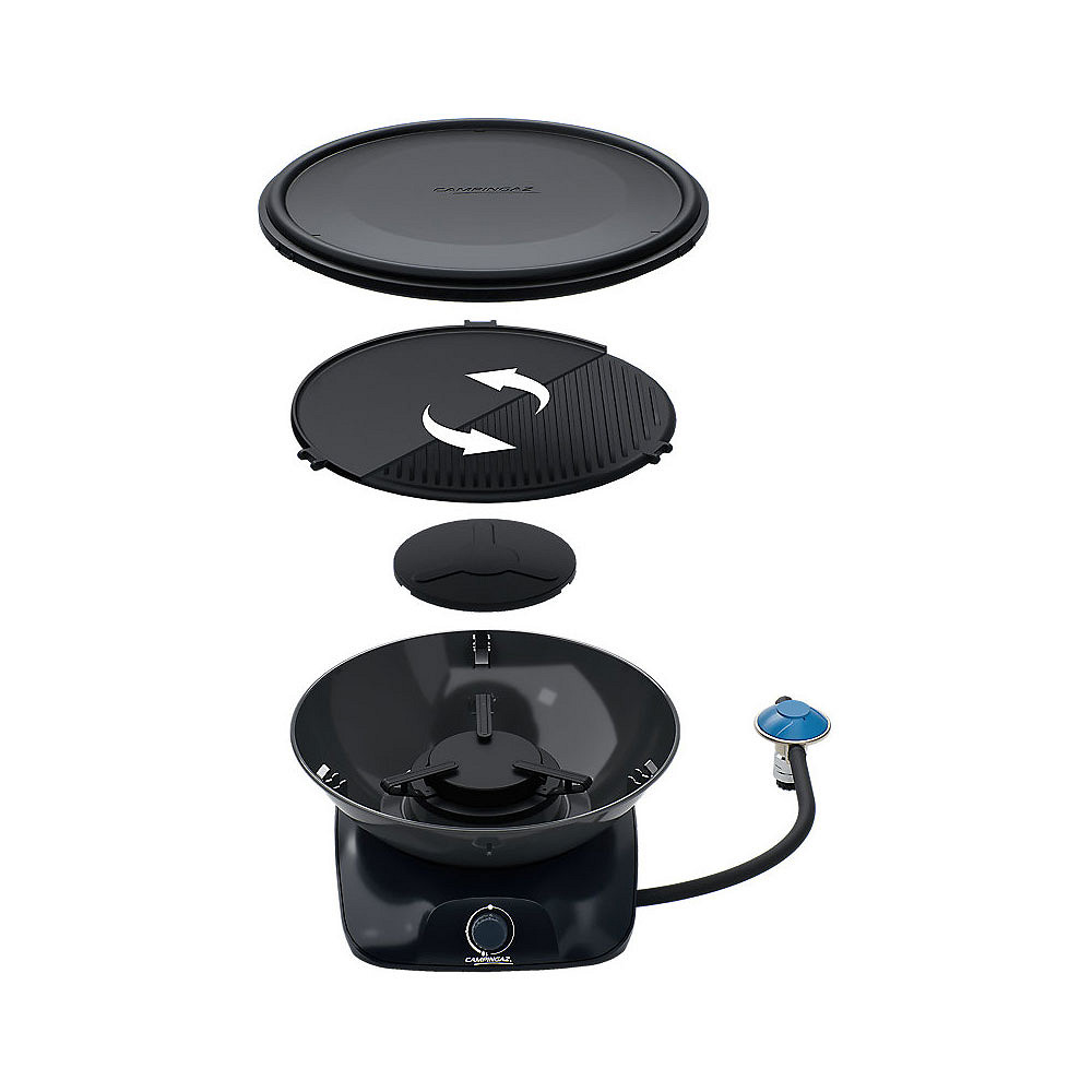 Bent u op zoek naar een veelzijdige, compacte en efficiënte gasbarbecue voor op de camping, in de tuin of op het balkon? Dan is de Campingaz 360 Grill CV de ideale keuze! Dit innovatieve kooktoestel combineert gebruiksgemak, flexibiliteit en kracht, waardoor u moeiteloos heerlijke maaltijden bereidt, waar u ook bent. Dankzij de combinatie van een geribbelde bakplaat, een vlakke plancha en een pannendrager kunt u eindeloos variëren in uw gerechten. Of u nu een sappige steak grilt, groenten sautéert of een heerlijke stoofpot bereidt, met de Campingaz 360 Grill CV is alles mogelijk.