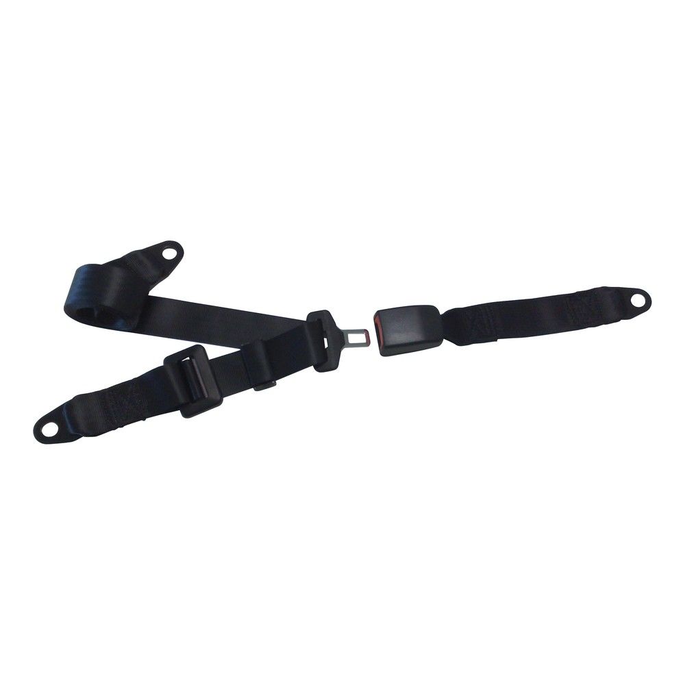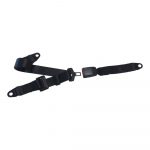 De 3-punts heupgordel. Deze is verstelbaar aan 1 kant.