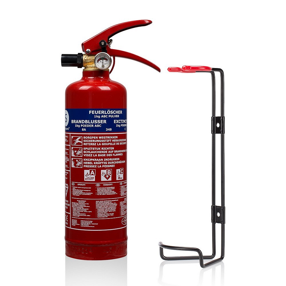 De poederblusser komt geleverd met een ophangbeugel waarmee het makkelijk op te hangen is.