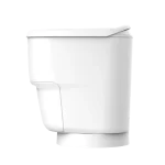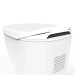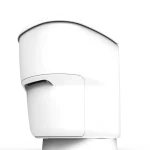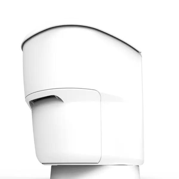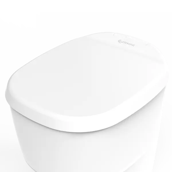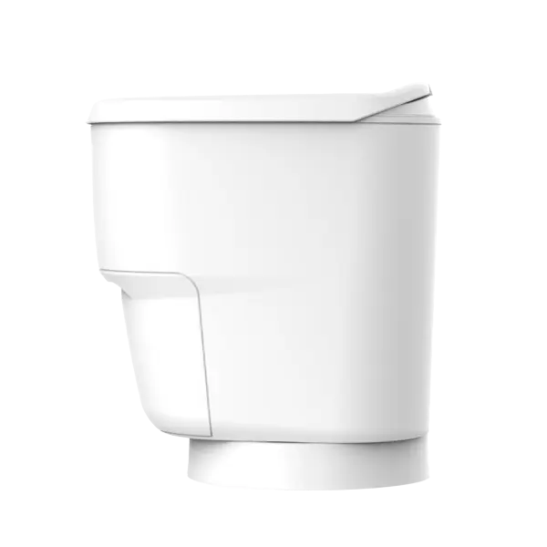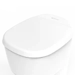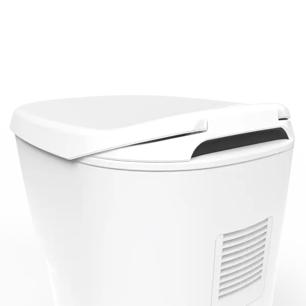 2; Na het indrukken van de spoelknop neemt het systeem het over. Uitwerpselen en toiletafval worden automatisch in foliezakjes verzegeld en in een speciaal compartiment onder de toiletbril verzameld, zonder geurtjes, kiemvrij en zonder waterbehoefte.