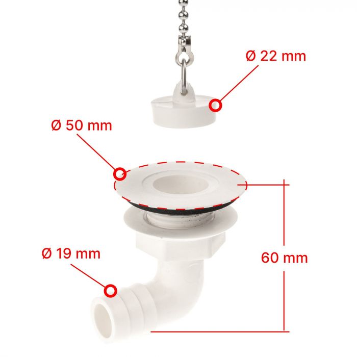 Met een aansluiting van 19 mm past deze Haakse afvoerplug perfect in spoelbakken en wasbakken, waardoor het een veelzijdige keuze is voor diverse toepassingen. De plug is ontworpen om te passen in een boorgat van 25 mm, waardoor de installatie moeiteloos verloopt.