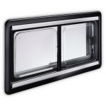 Dit goed geisoleerde schuifraam beschikt over een rolgordijn en insectenhor. De afmetingen zijn 75x40cm.