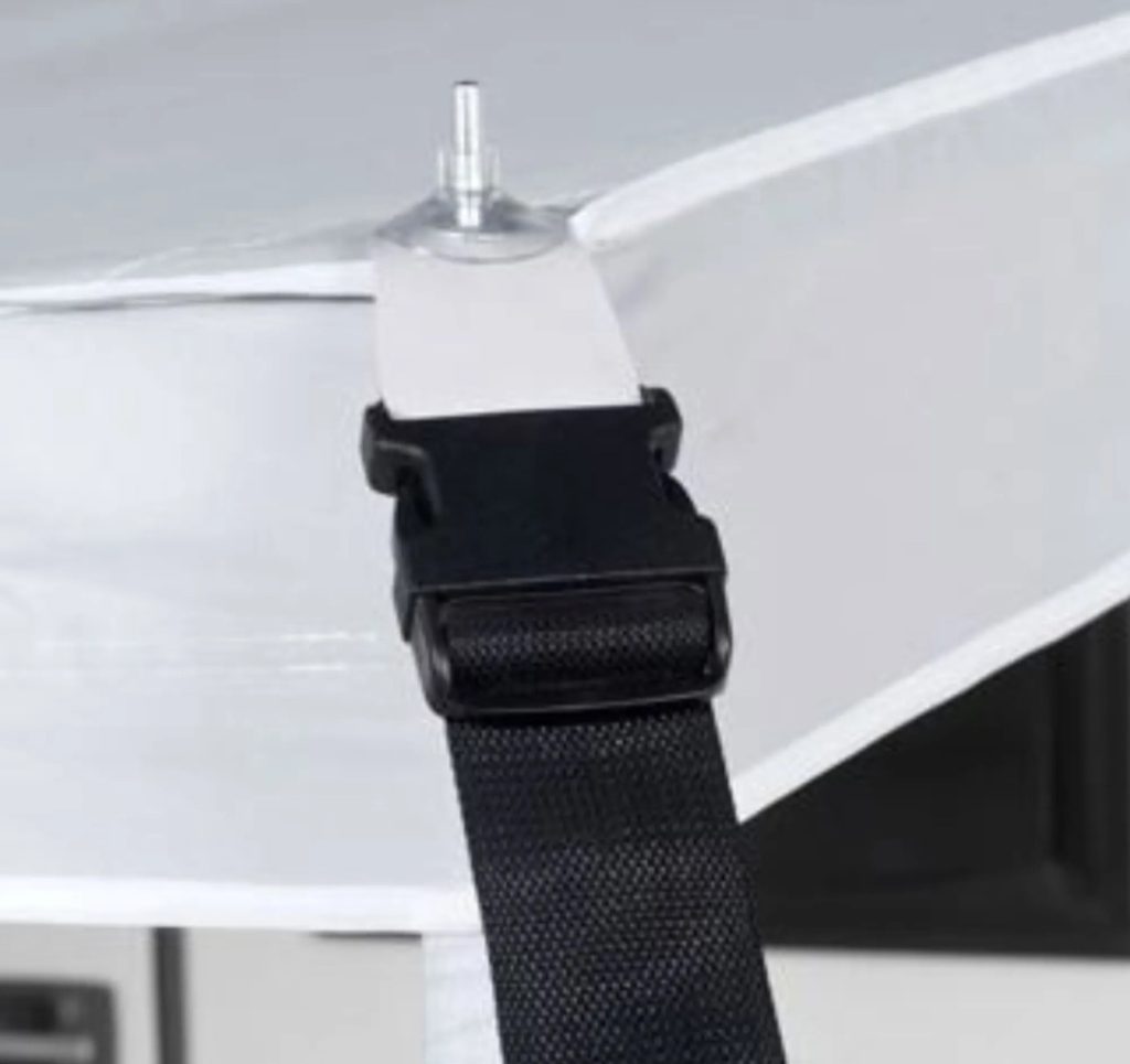 Deze Dorema Safe Lock bevestiging wordt eenvoudig over de pinnen van de luifel geplaatst, waarna u de stormband stevig kunt vastklikken. Dit zorgt voor extra stabiliteit en voorkomt schade door harde wind of plotselinge weersveranderingen. Onmisbaar voor iedere kampeerder die zorgeloos wil genieten, ongeacht het weer.