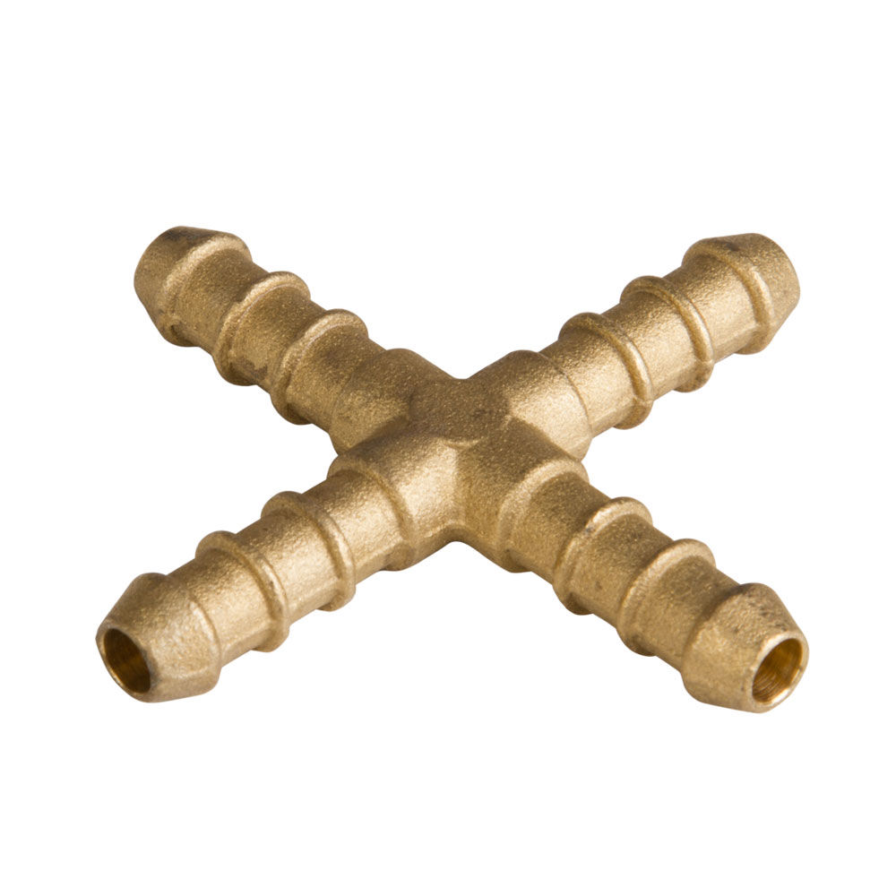 Dit kruisstuk heeft aan alle zijden dezelfde maat slangtule. Zo kunt u de gasstroom van een slang, opsplitsen naar drie andere slangen. Handig om meerdere gasapparaten aan te kunnen sluiten op slechts één gasbron.