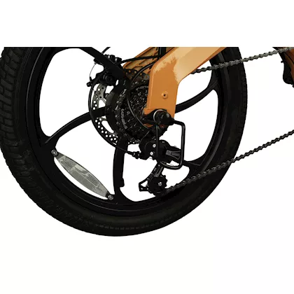 De elektrische vouwfiets is uitgerust met een 250 W borstelloze motor en een krachtige 36V Lithium-Ion accu met een capaciteit van 10,5 Ah.