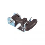Door het rubberen hendeltje in en uit het stalen kapje te kantelen vormt de sluiting één geheel.
