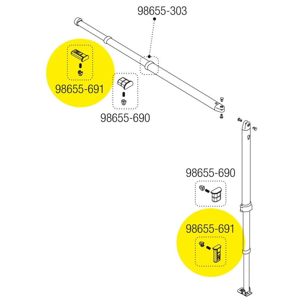 Wanneer het achterste deel van de 3-delige ligger van jouw Fiamma Caravanstore of F35 niet meer goed op spanning blijft, kan dit wijzen op een versleten drukknop. Maar maak je geen zorgen, het vervangen van deze drukknop is gemakkelijk en snel te doen. Trek het achterste deel van de ligger eruit, druk de drukknop volledig in en wip met een platte schroevendraaier het eindstuk van de stang los. Schuif vervolgens het nieuwe drukknopje in de stang en bevestig deze weer in de ligger.