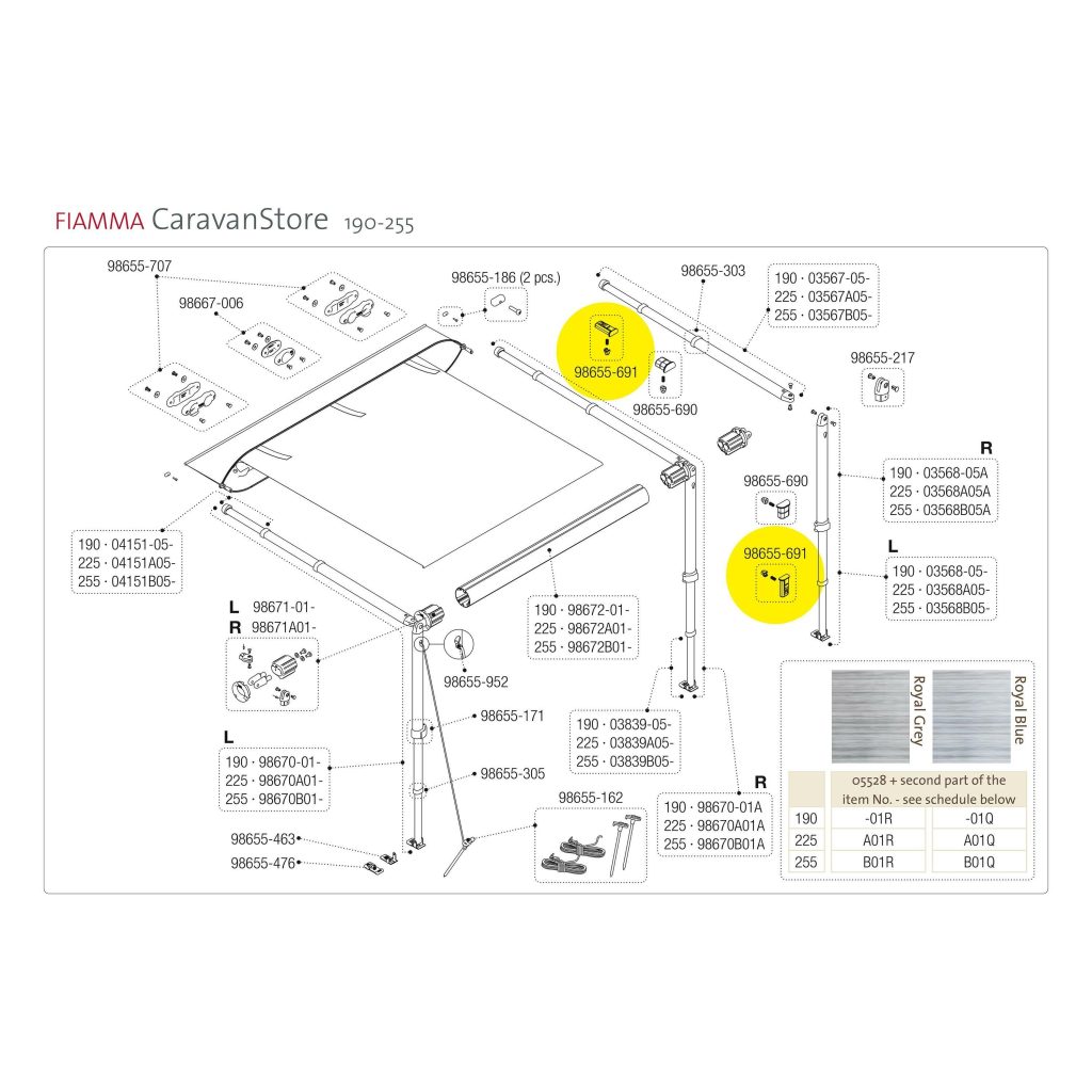 Bestel nu de Fiamma F35 Caravanstore Inner Rafter Spring Button en zorg ervoor dat jouw Fiamma Caravanstore of F35 luifel altijd in topconditie is!