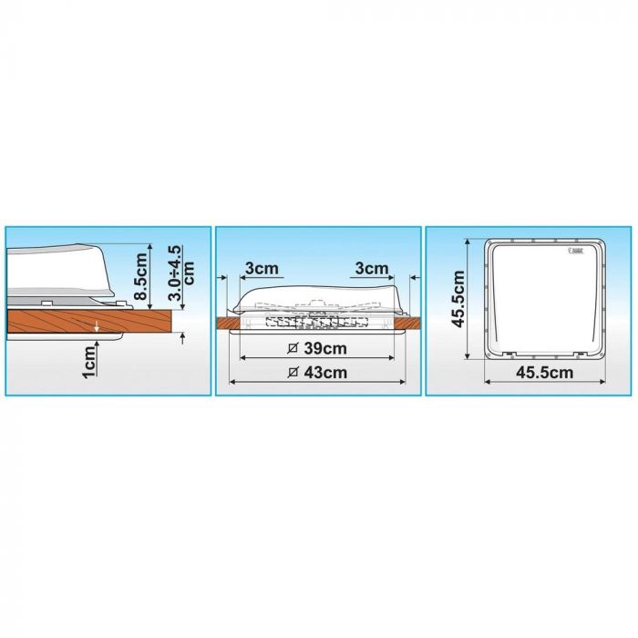 Daarnaast is de Fiamma Turbo-Vent uitwisselbaar met oudere Fiamma dakluiken van 40 x 40 cm en met dakluiken van 36 x 36 cm tot 42 x 42 cm dankzij het verbeterde frame. Hierdoor kunt u zonder zorgen uw oude dakluik vervangen door de Turbo-Vent Polar Control.