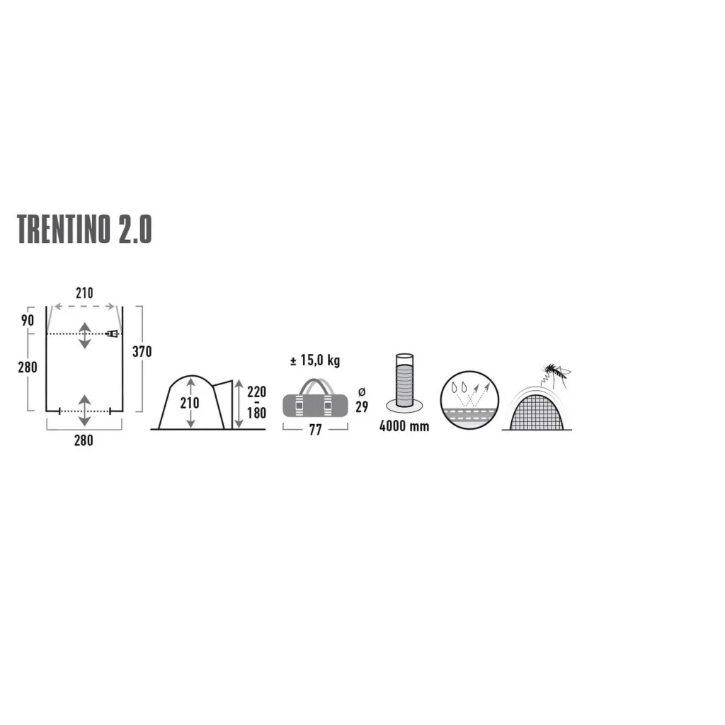 Met een pakmaat van slechts 72 x 30 x 30 cm en een gewicht van 15 kg, neem je de Trentino 2.0 gemakkelijk mee op reis. Of je nu met z’n tweeën reist of met een gezin – deze bustent is een waardevolle uitbreiding van je kampeeruitrusting. Eenvoudig op te zetten, veelzijdig in gebruik, en ontworpen voor jaren kampeerplezier.