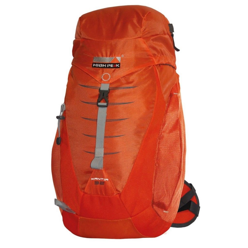 Oranje rugzak, inhoud 32 liter. Wordt geleverd met regenhoes.