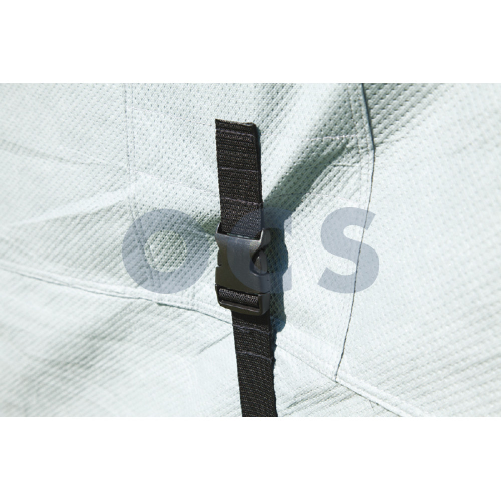 Met brede spanbanden van 3,8 cm aan de voor- en achterzijde blijft de hoes stevig op zijn plek, zelfs bij harde wind. De handige dubbele ritsen aan beide zijkanten bieden eenvoudige toegang tot uw camper, zonder dat u de hele hoes hoeft te verwijderen.