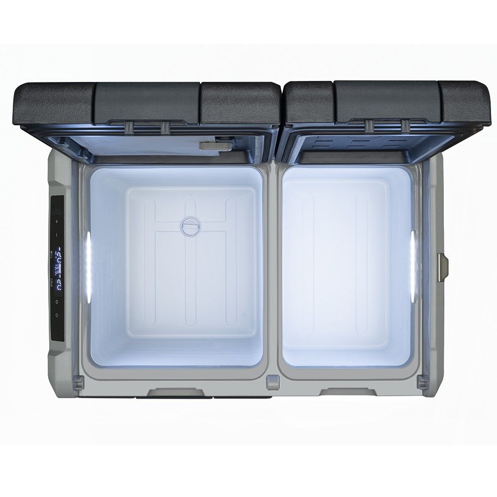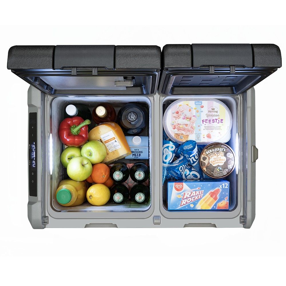 De Hyckes HyCooler Pro Dual 50 compressor koelbox kan koelen en vriezen tegelijk door de twee apart instelbare koelcompartimenten. Wanneer u minder koelruimte nodig heeft, kunt u eenvoudig een van de compartimenten uitschakelen.