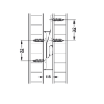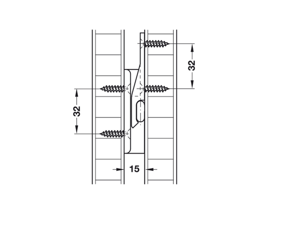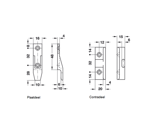| Montage | Met spaanplaatschroeven platkop Ø4 mm / Euroschroeven Ø3 mm of Ø5 mm |