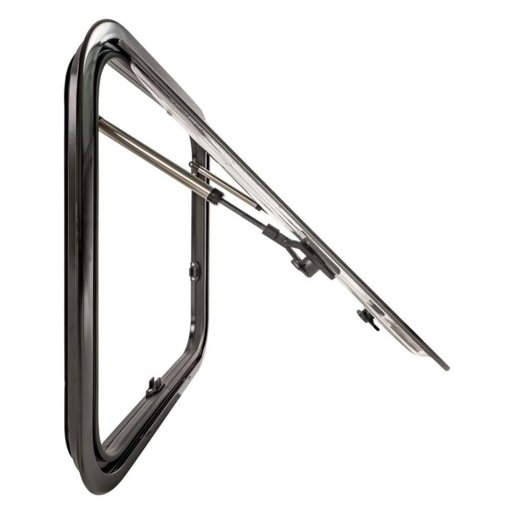 Ons klapraam is vervaardigd met het oog op duurzaamheid en kwaliteit. Het grijze dubbel acrylglas is niet alleen stijlvol, maar ook UV-bestendig, waardoor het bestand is tegen de elementen en langdurige blootstelling aan de zon. Hierdoor behoudt het raam zijn moderne uitstraling, zelfs na jarenlang gebruik.