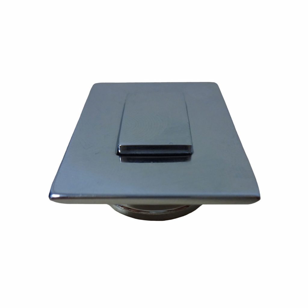 Deze chromen drukknop met rechthoekige plaat is 40 x 30 millimeter.