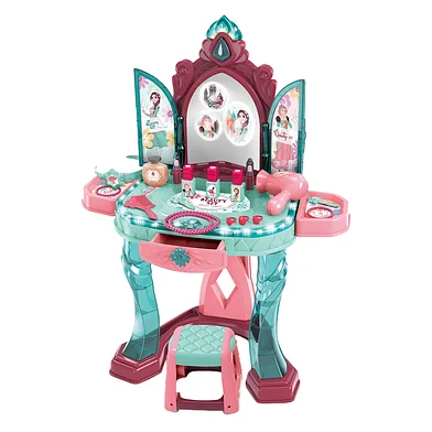 Magische prinsessenkaptafel met spiegel die opent en een prinses toont. Inclusief accessoires en krukje. Perfect voor fantasierijk spelen vanaf 3 jaar.