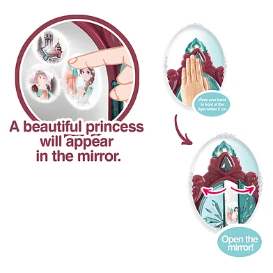Laat jouw kind zich een echte prinses voelen met deze betoverende prinsessenkaptafel met magische spiegel! Deze luxe kaptafel is een droom die uitkomt voor elke kleine beauty-liefhebber. Met één simpele beweging over de fonkelende edelsteen opent de spiegel zich en verschijnt er een prachtige prinses — een magisch moment dat keer op keer blijft verrassen.