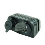 Contactdoos 12V met 2x een USB lader; 1x 1A en 1x 2.1A.