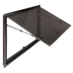 Dit klapraam is voorzien van holle dubbele beglazing van acryl, wat zorgt voor een uitstekende isolatie. Hierdoor blijft uw voertuig koel in de zomer en warm in de winter. De verhoogde buitenzijde en vlakke binnenzijde dragen bij aan een stevige en weerbestendige constructie. Dankzij de UV-bestendige aluminiumlegering met poedercoating is het raam bestand tegen slijtage, corrosie en weersinvloeden. Dit garandeert een lange levensduur en een blijvend mooie uitstraling.
