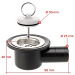 Deze haakse afvoerplug, met een indrukwekkende diameter van 25 mm, is ontworpen voor universele toepassing en past naadloos in spoel- en wasbakken. Met een buitenrand van 63 mm straalt het niet alleen duurzaamheid uit, maar zorgt het ook voor een gestroomlijnde uitstraling in elke omgeving.
