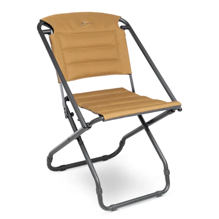 De Santos is daarnaast lichtgewicht (slechts 4 kg) en compact opvouwbaar tot 75 x 55 x 11 cm. Dat maakt hem gemakkelijk mee te nemen in de caravan, camper of auto. Ondanks zijn compacte formaat doet hij absoluut niet onder voor grotere kampeerstoelen – qua comfort én stijl.