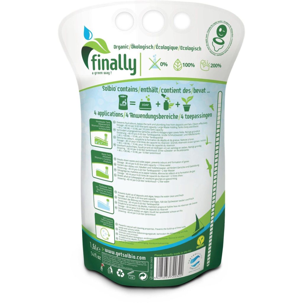 Deze toiletvloeistof is niet alleen biologisch, maar ook puur natuur. Het is de perfecte oplossing voor iedereen die graag het milieu wil sparen. Maar wat deze toiletvloeistof echt bijzonder maakt, is de krachtige werking. Met slechts 1,6 liter Solbio Marine toiletvloeistof kun je tot wel 40 keer het toilet gebruiken. Dat betekent dat je langer met je voorraad doet en dus minder afval produceert.