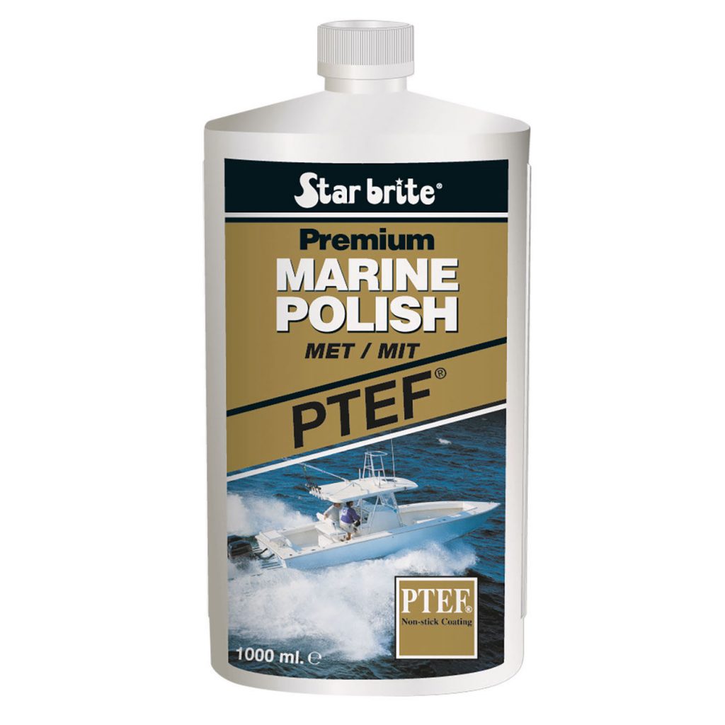 Na het wassen van uw boot biedt de Premium Marine polish met PFEF van Star brite de ultieme bescherming tegen aanhechting van nieuwe vervuiling, roest of zout- en kalkaanslag. Door dit polijstmiddel voor boten gaan het polyester, het metaal en de geverfde oppervlakken weer glanzen. Het PTEF laat een gladde en niet plakkerige laag achter.