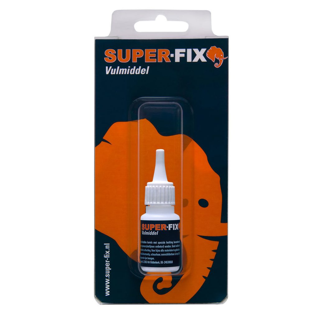 Het Super-Fix vulmiddel is te gebruiken op alle breuken. Het is belangrijk dat de te verlijmen oppervlakken vrij zijn van olie, stof en vet.