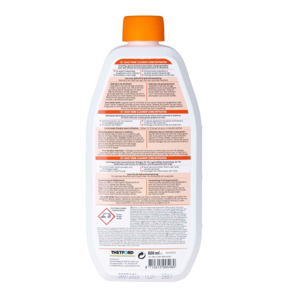 Met de Thetford Duo Tank Cleaner Concentrated 800 ml maak je snel en efficiënt korte metten met vieze tanks. Dit product verlengt niet alleen de levensduur van je tanks, maar zorgt ook voor een frisse en hygiënische caravanervaring.