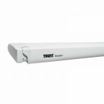 De Thule Omnistor 6300 12 volt 353 x 250 cm cassetteluifel white – mystic grey is een praktische dakluifel voor kampeerbussen, campers en caravans. Deze Thule cassetteluifel bestaat uit een 353 centimeter lange witte cassette, met een doek in de kleur Mystic Grey.12 volt motorDe Thule Omnistor 6300 Motorized luifel is moeiteloos te openen en sluiten dankzij de ingebouwde 12 volt motor. Deze bedient u met een drukschakelaar. De gemotoriseerde luifel is 3 centimeter langer dan een vergelijkbare manuele luifel en weegt slechts 1 kilogram meer.Dakluifel met aanpasbare hoekDeze luifel wordt geplaatst op het dak van uw kampeervoertuig. De hoek van deze luifel is aanpasbaar, zodat de luifel ook geopend en gesloten kan worden als de schuifdeur van uw bus open staat. Het opzetten en aanpassen van de steunpoten is zo gebeurd dankzij het gebruiksvriendelijke Quick Lock-systeem.