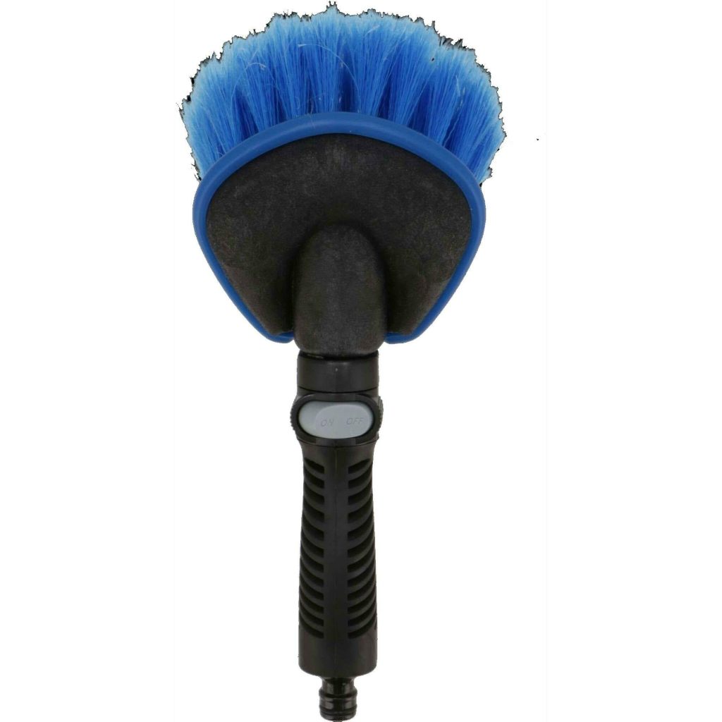 De borstel is uitgerust met een tuimelschakelaar waarmee u de watertoevoer aan of uit kunt zetten. Hierdoor kunt u gemakkelijk de juiste hoeveelheid water gebruiken om uw voertuig schoon te maken zonder het risico van overmatige waterverbruik. Deze borstel is ideaal voor het reinigen van velgen of moeilijk bereikbare plekken.
