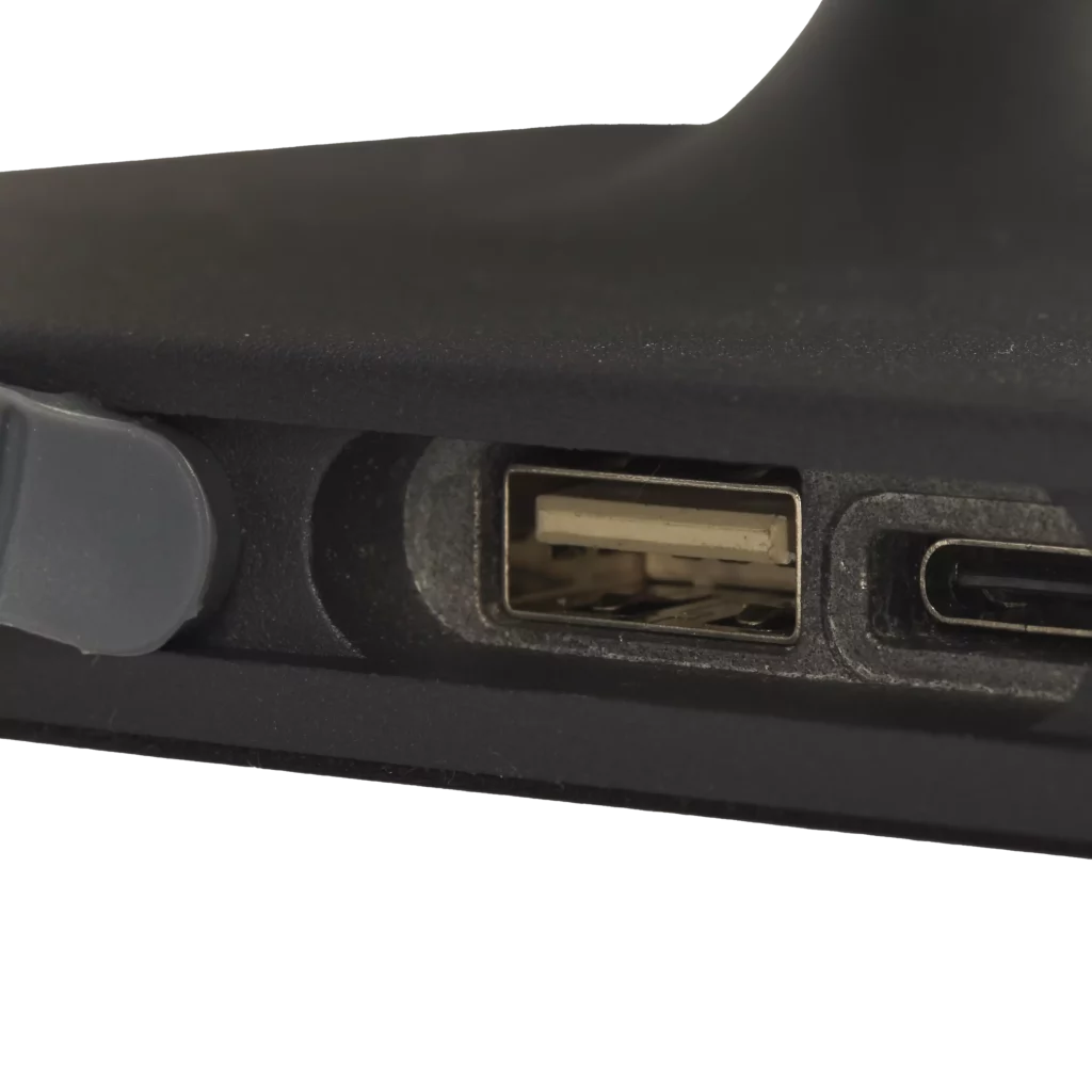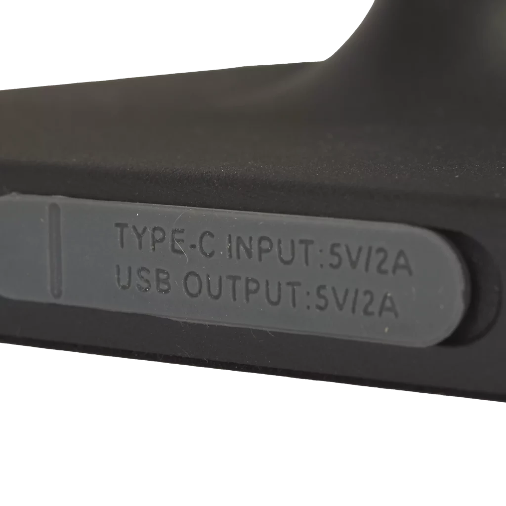 Aan de zijkant van de voet bevindt zich het laadstation, hier kun je met de meegeleverde USB-C kabel de lamp opladen, maar kun je ook via de USB ingang een telefoon of tablet opladen.