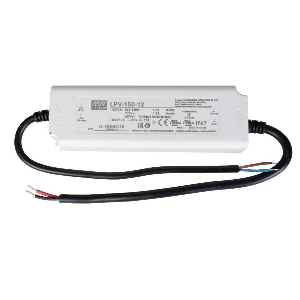 Deze schakelende voeding heeft een ingangsspanningsbereik van 180 -305 VAC. De uitgangsspanning is 12 VDC. Het vermogen van de voeding is 100 watt en het rendement is 87 procent. De voeding heeft een lengte van 19,1 cm en een breedte van 6,3 cm en een hoogte van 3,75 cm.